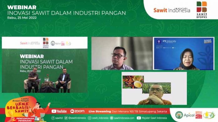 Hal tersebut disampaikan Asisten Deputi Pengembangan Agribisnis Perkebunan, Moch. Edy Yusuf, saat memberikan pidato kunci dalam Webinar āInovasi Sawit dalam Industri Panganā yang diadakan Majalah Sawit Indonesia bekerjasama dengan Badan Pengelola Dana Perkebunan Kelapa Sawit (BPDPKS), Rabu (25 Mei 2022).