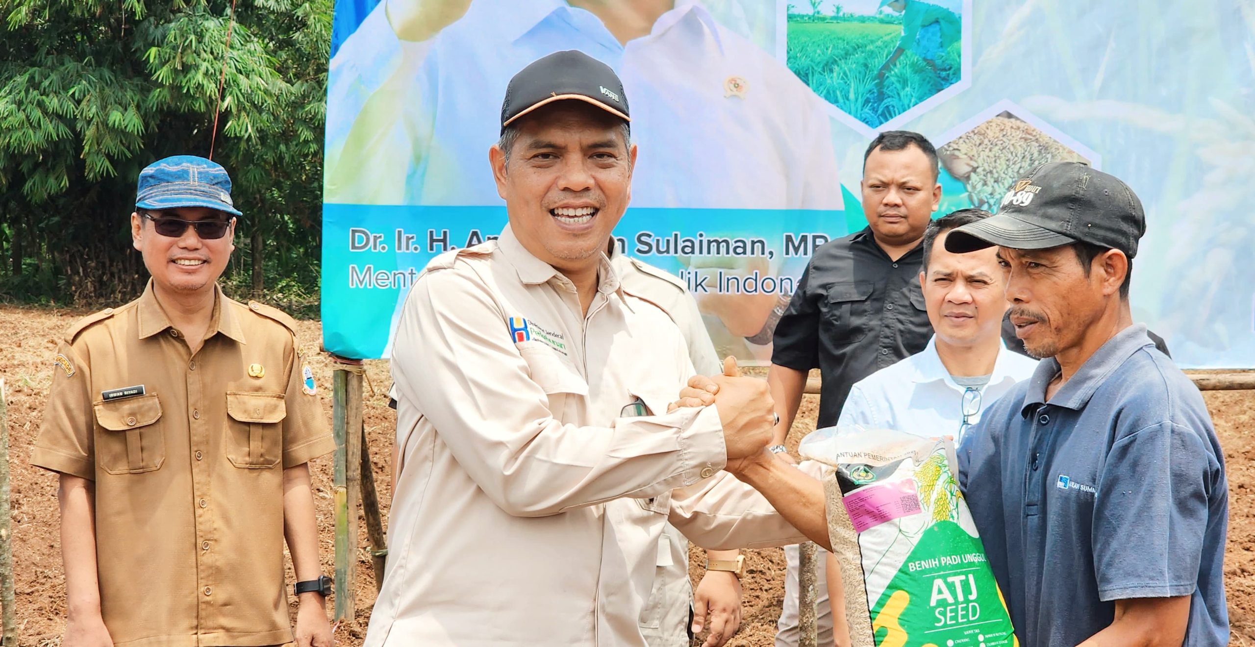 Plt. Dirjen Perkebunan, Kementerian Pertanian (Kementan), Heru Tri Widarto menyerahkan bantuan benih padi gogo kepada petani di Banten, Selasa, 13 Maret 2025. Dok: Kementan