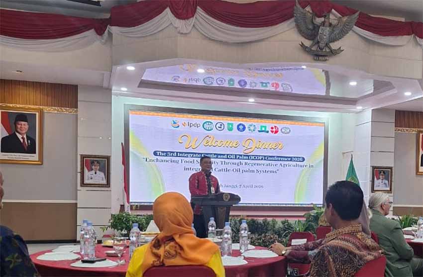 Pekanbaru — Pemerintah Provinsi Riau mempercepat pengembangan sistem integrasi sapi dan kelapa sawit atau SISKA sebagai strategi memperkuat ketahanan pangan daerah. Dorongan ini mengemuka dalam jamuan penyambutan The 3rd Integrated Cattle and Oil Palm (ICOP) Conference 2026 yang digelar di Pekanbaru, Senin, 7 April 2026.